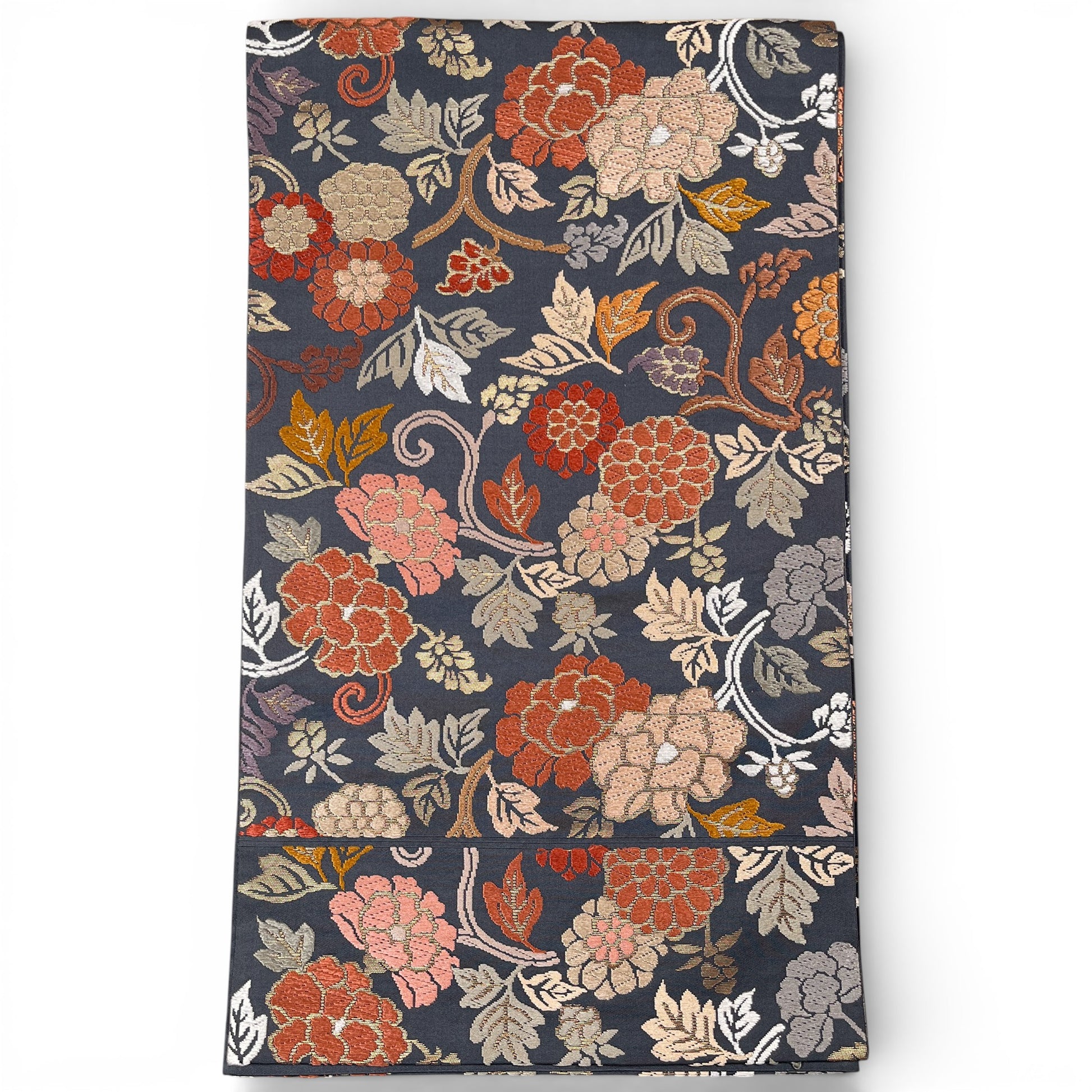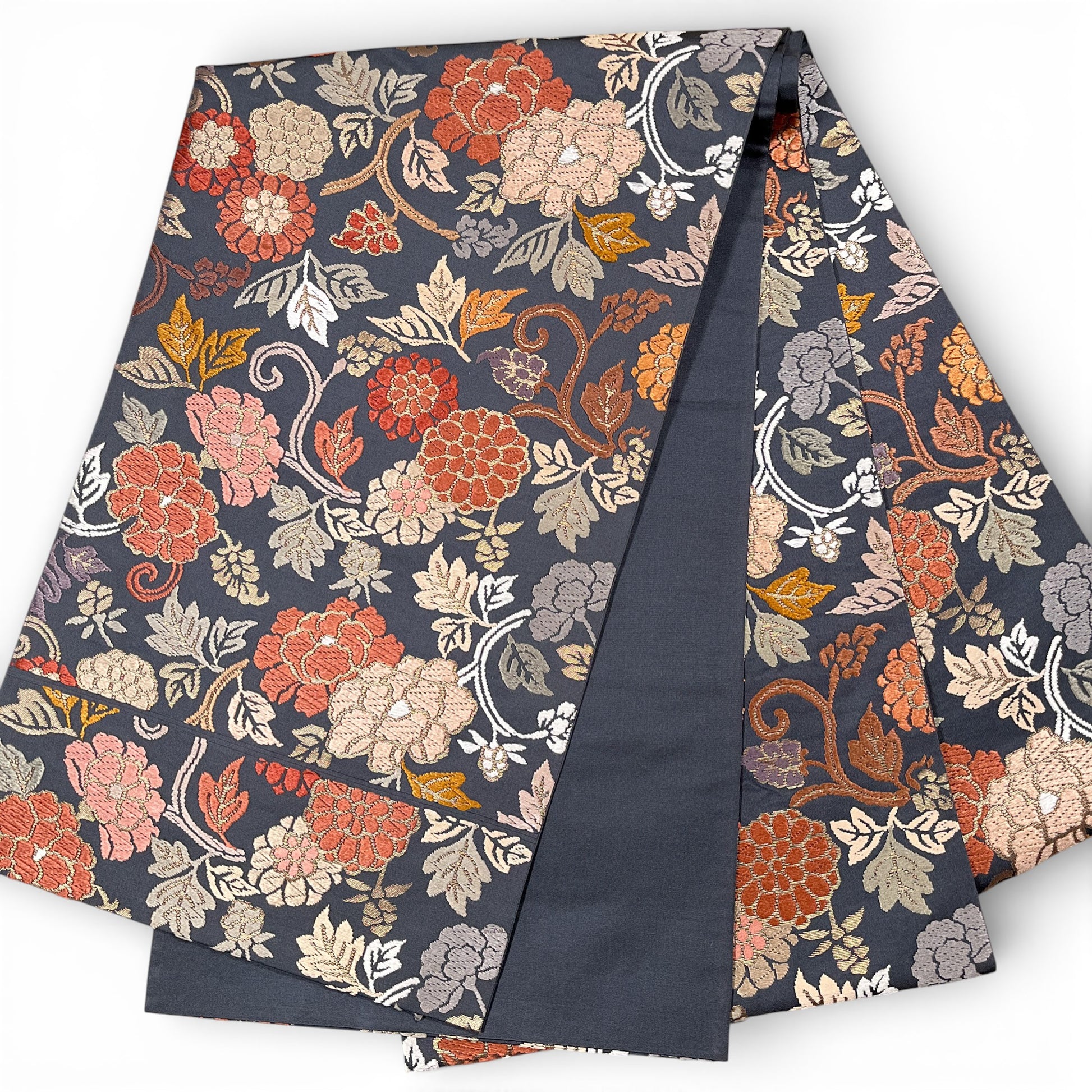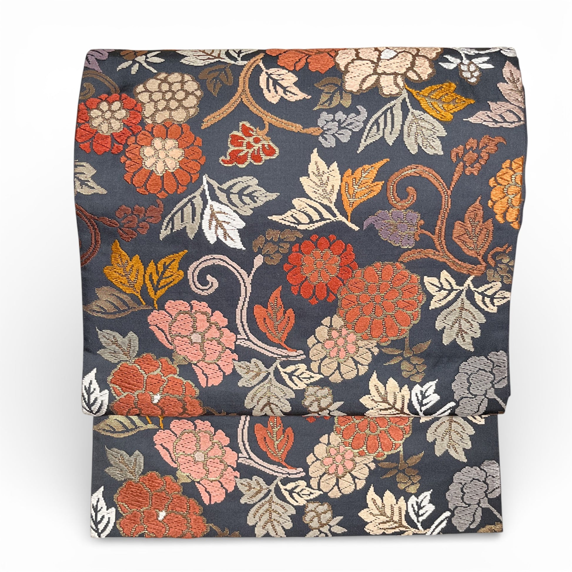 B106996-2 袋帯 唐草花文様 ブルーグレー地