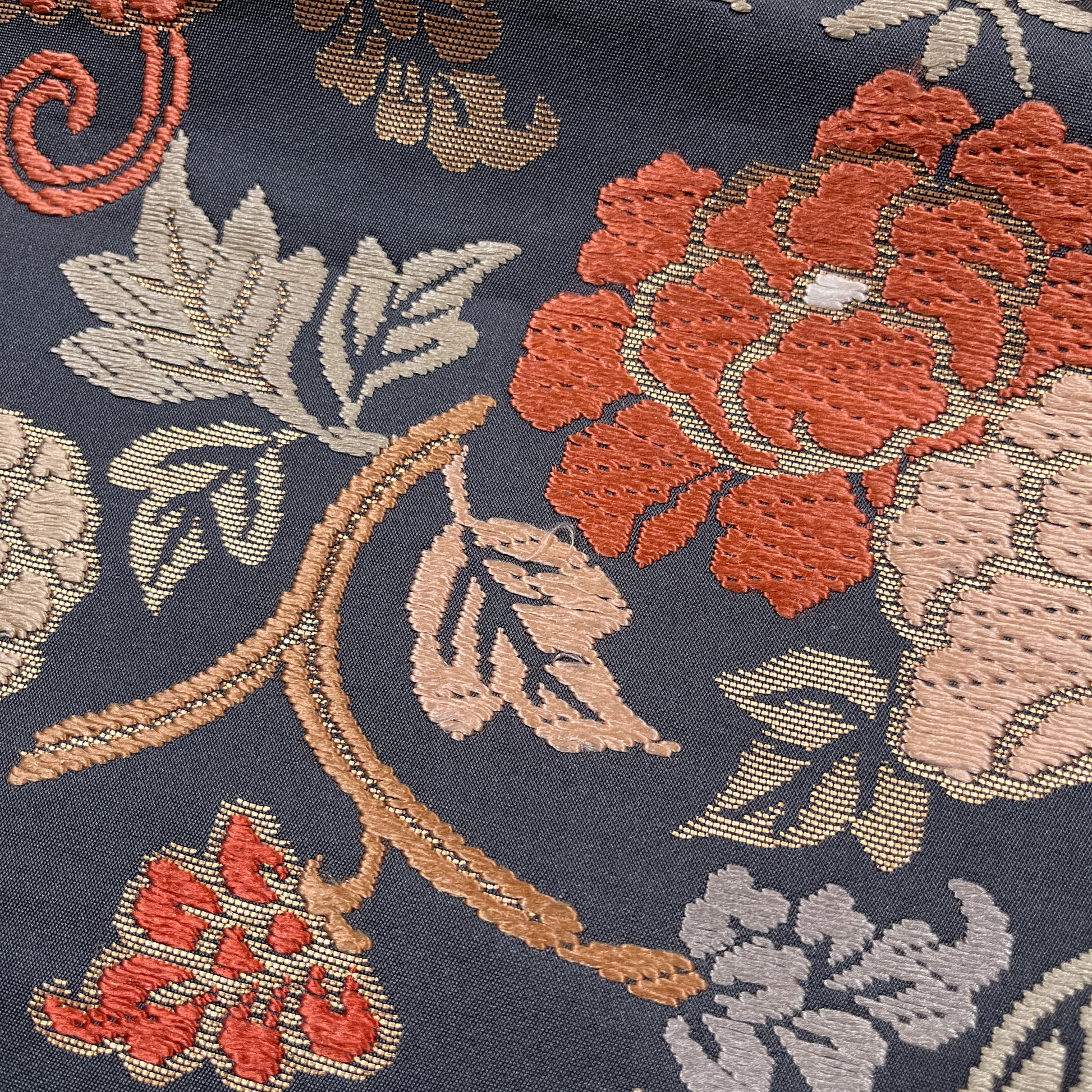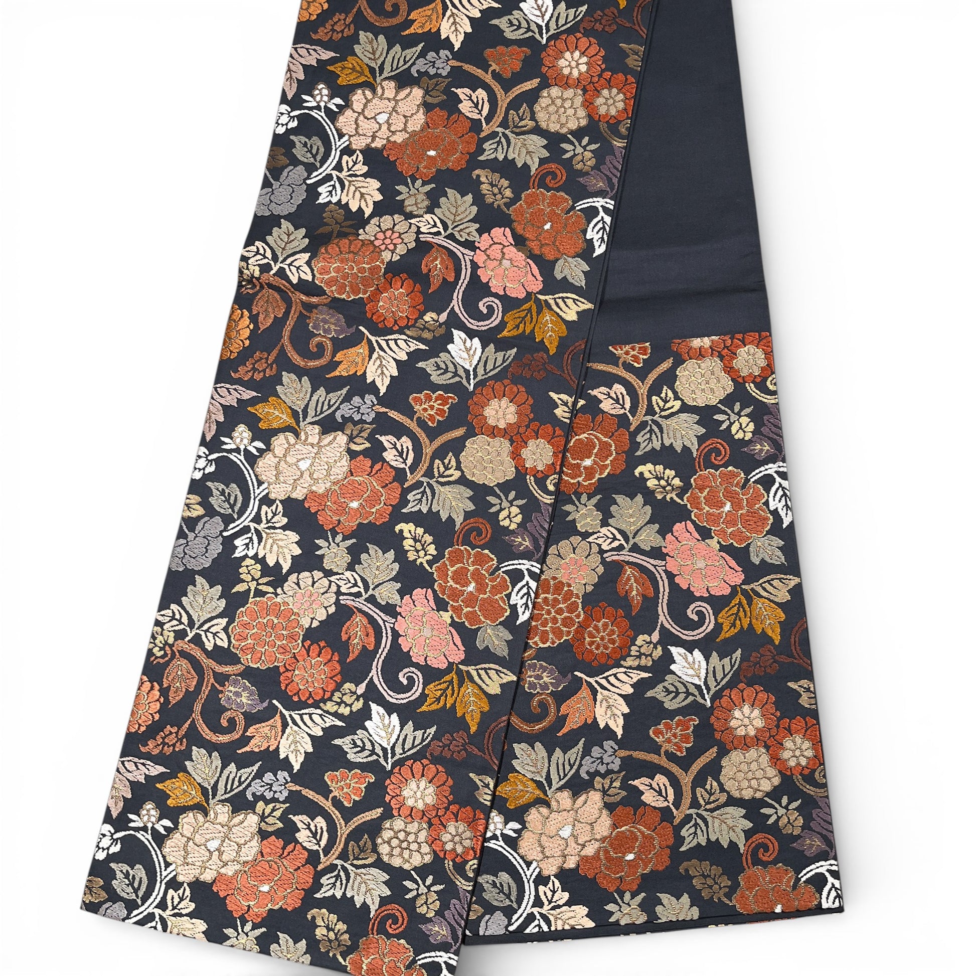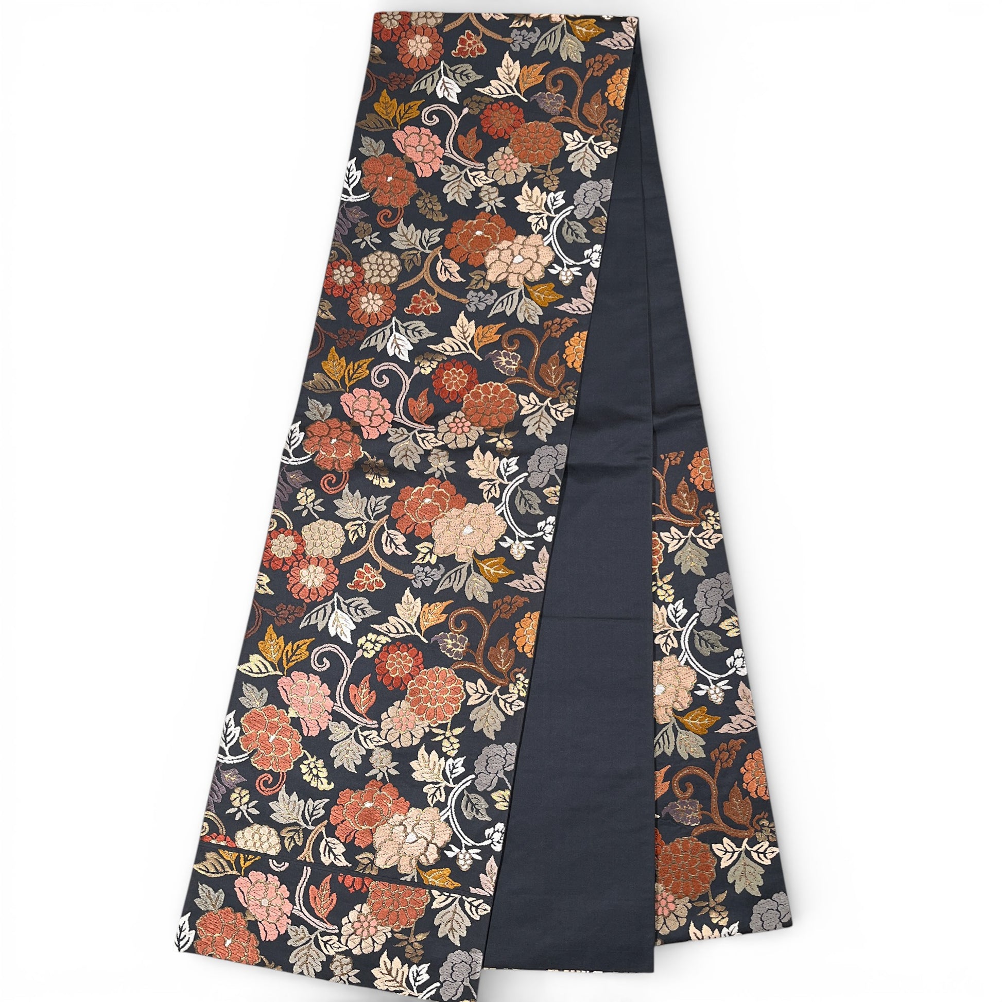 B106996-2 袋帯 唐草花文様 ブルーグレー地