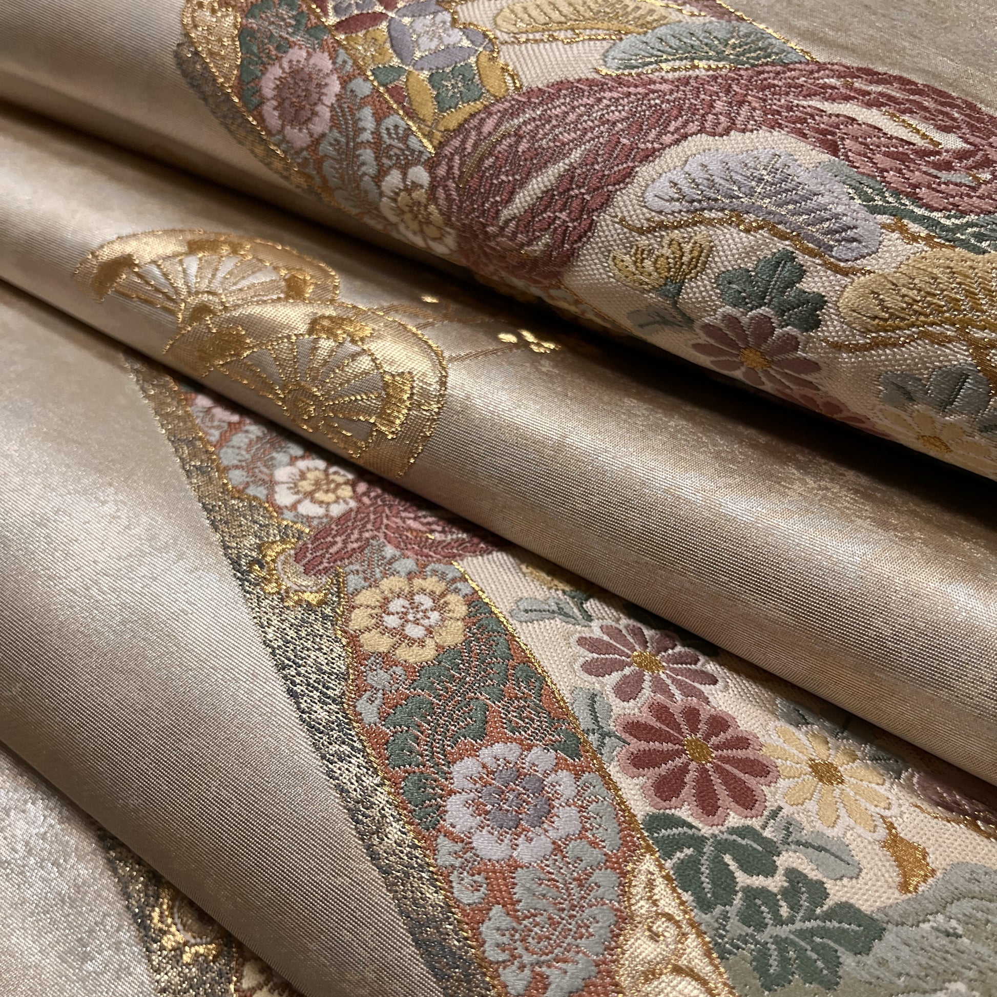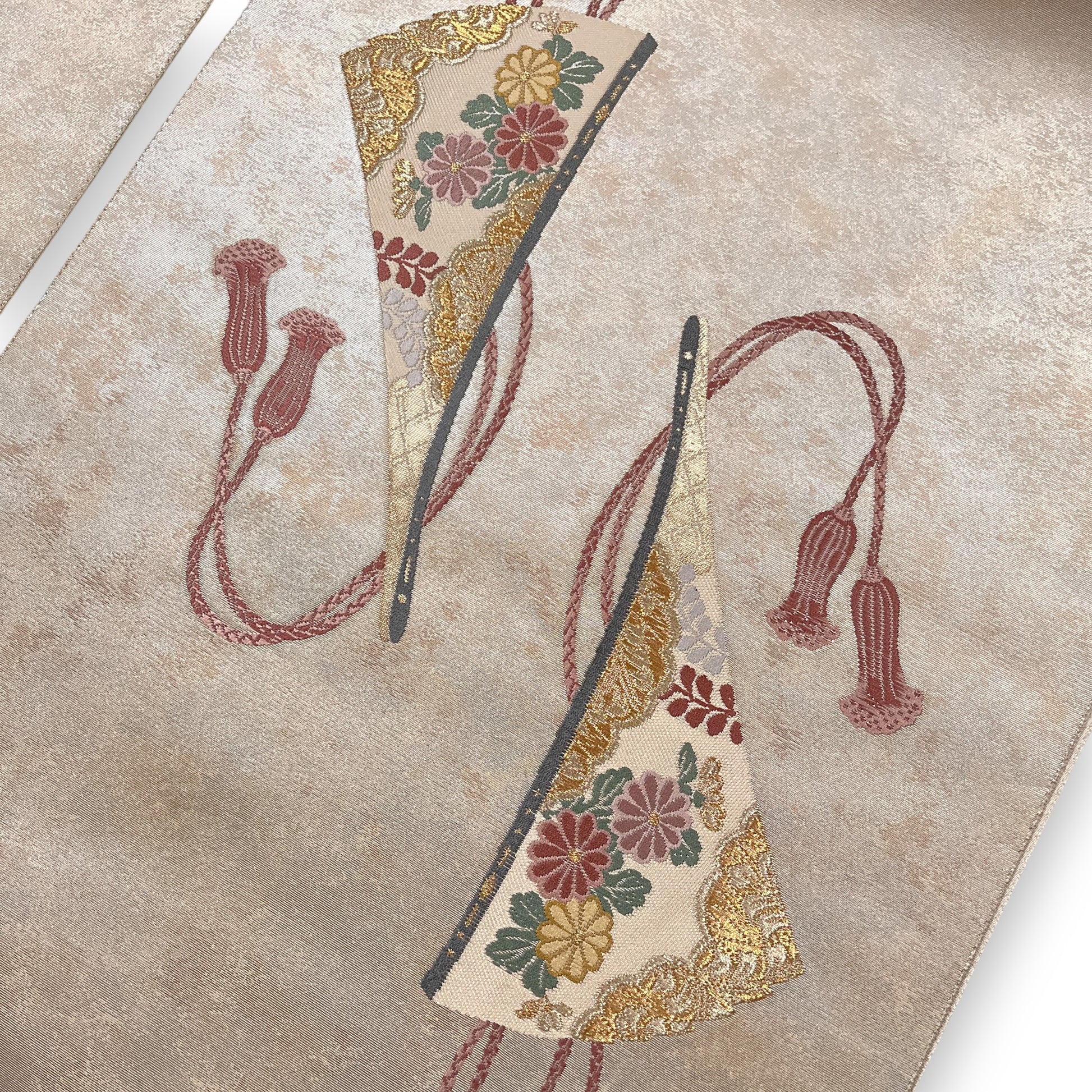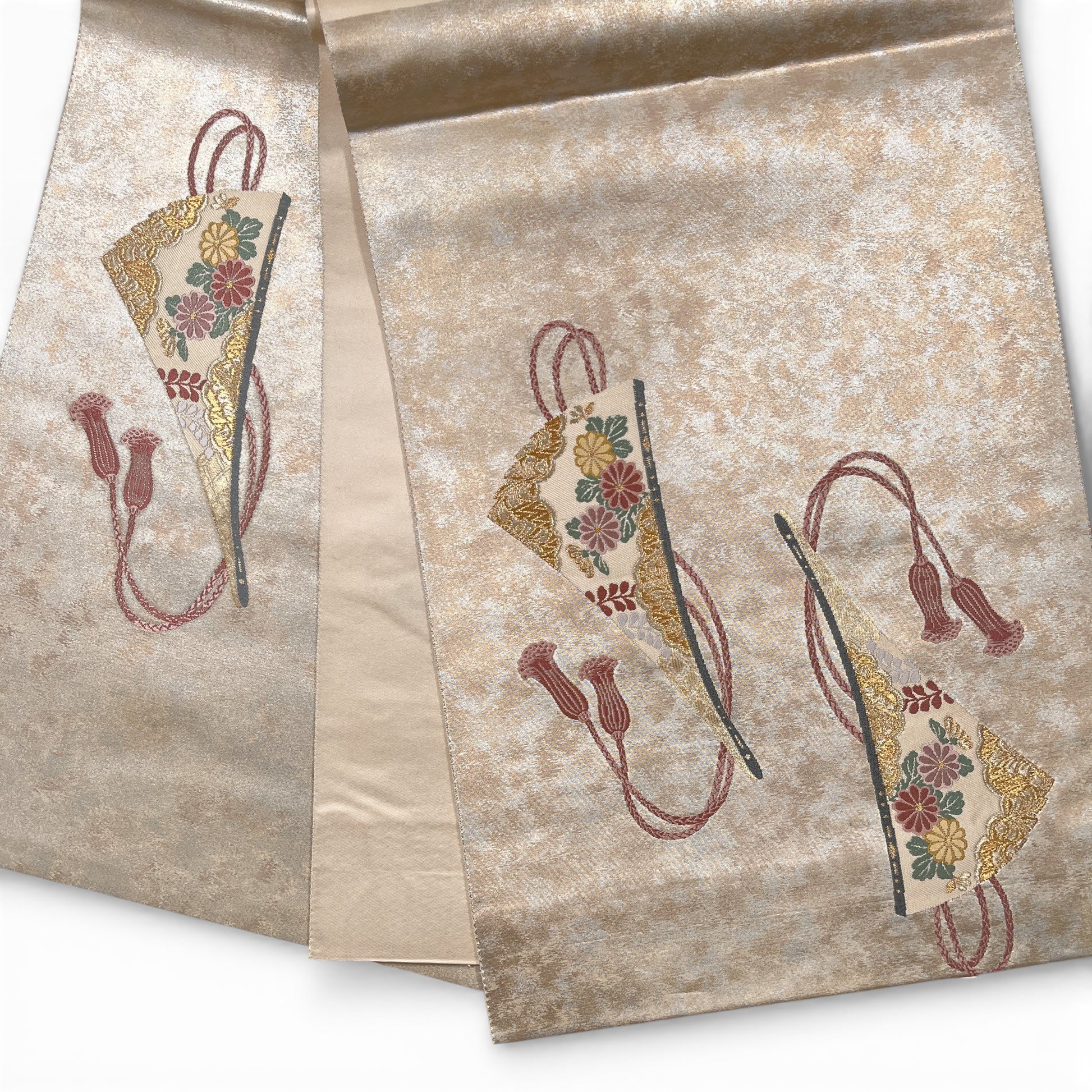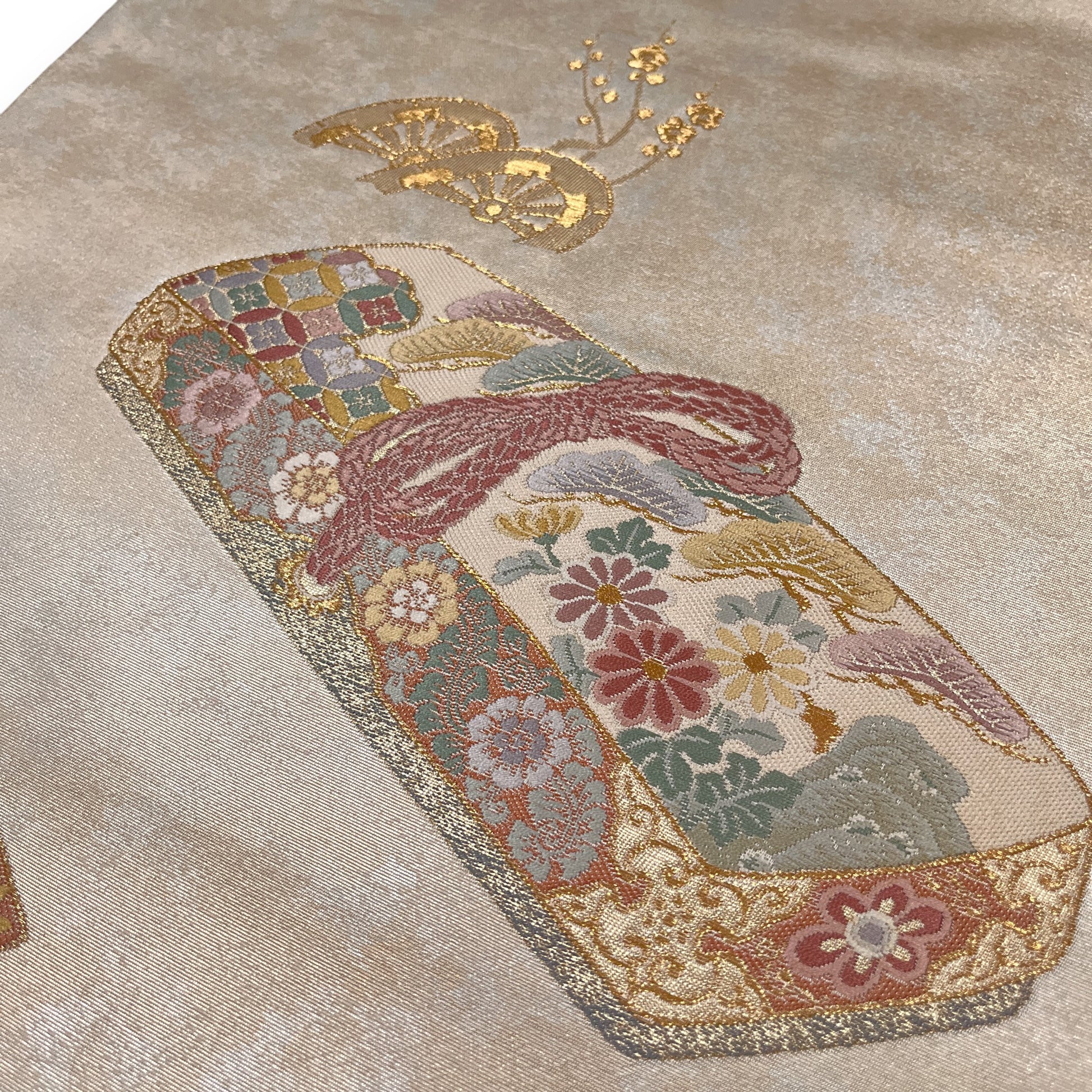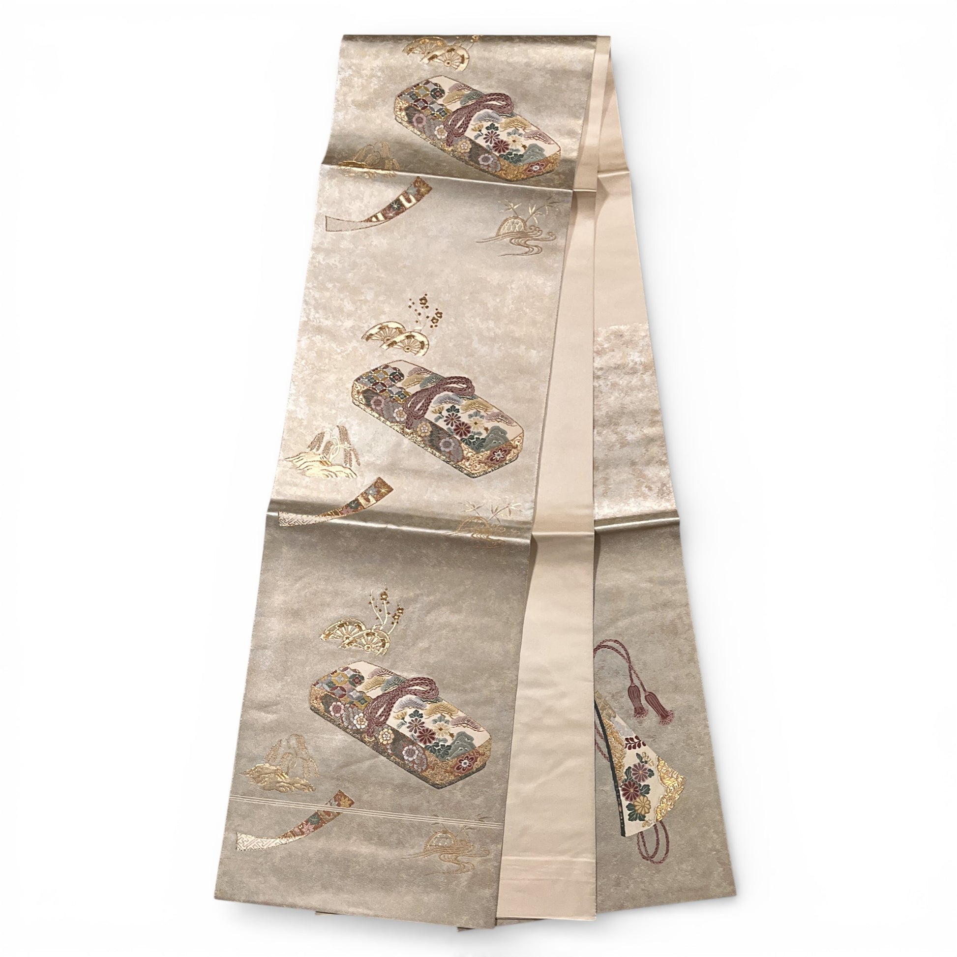 B132823-1 袋帯 宝尽くし 貝桶文様 金糸 本銀摺箔