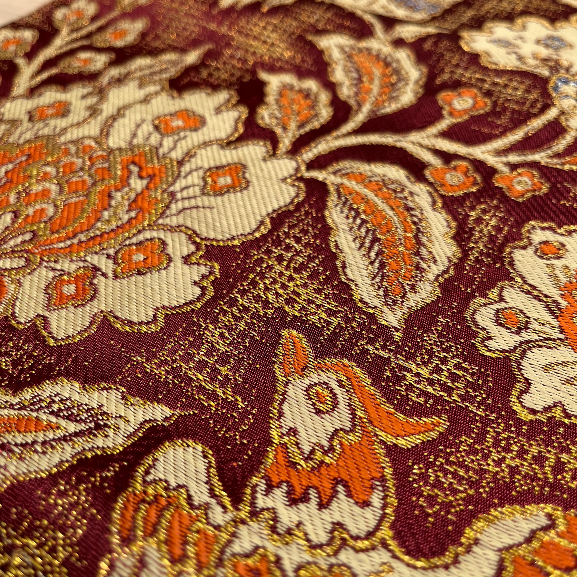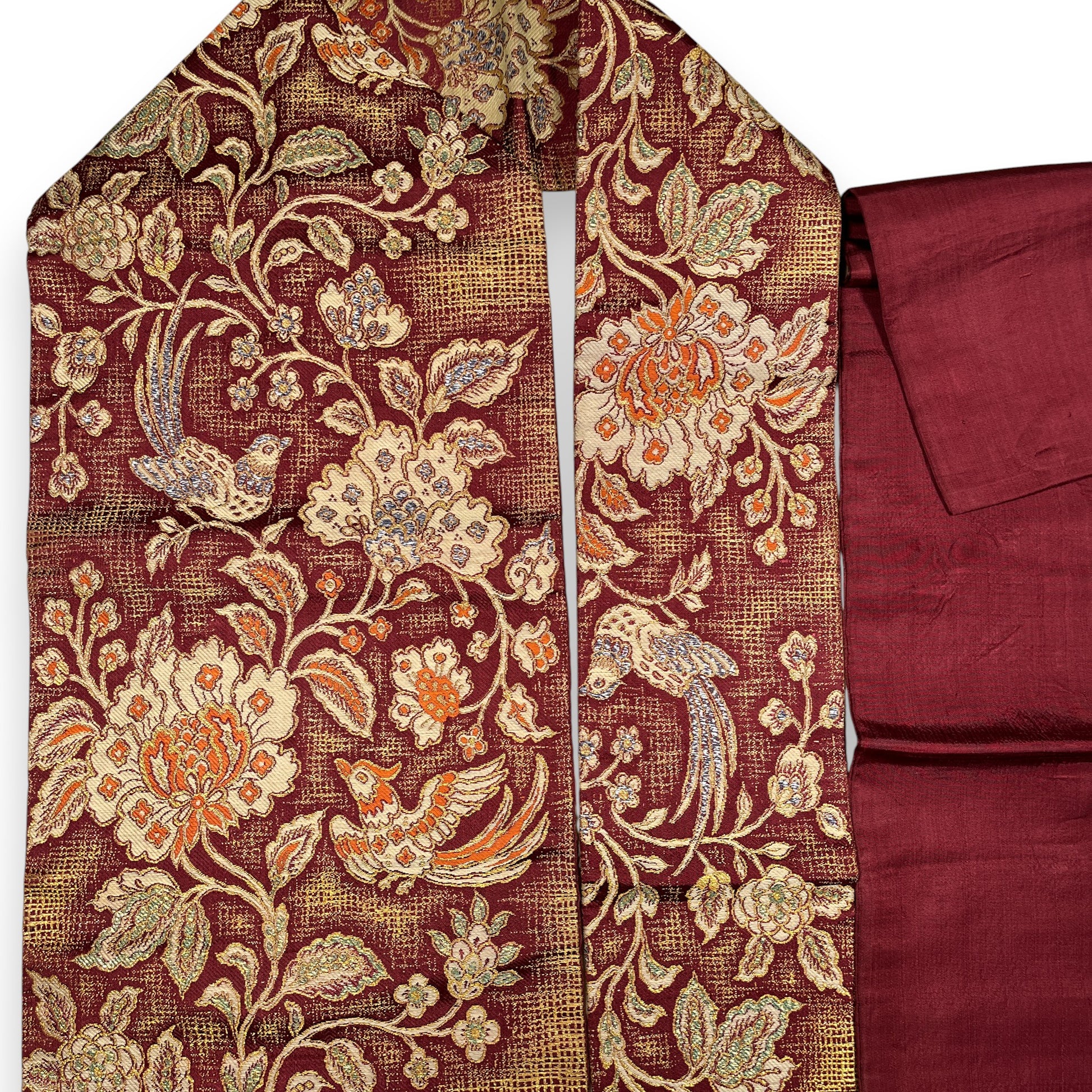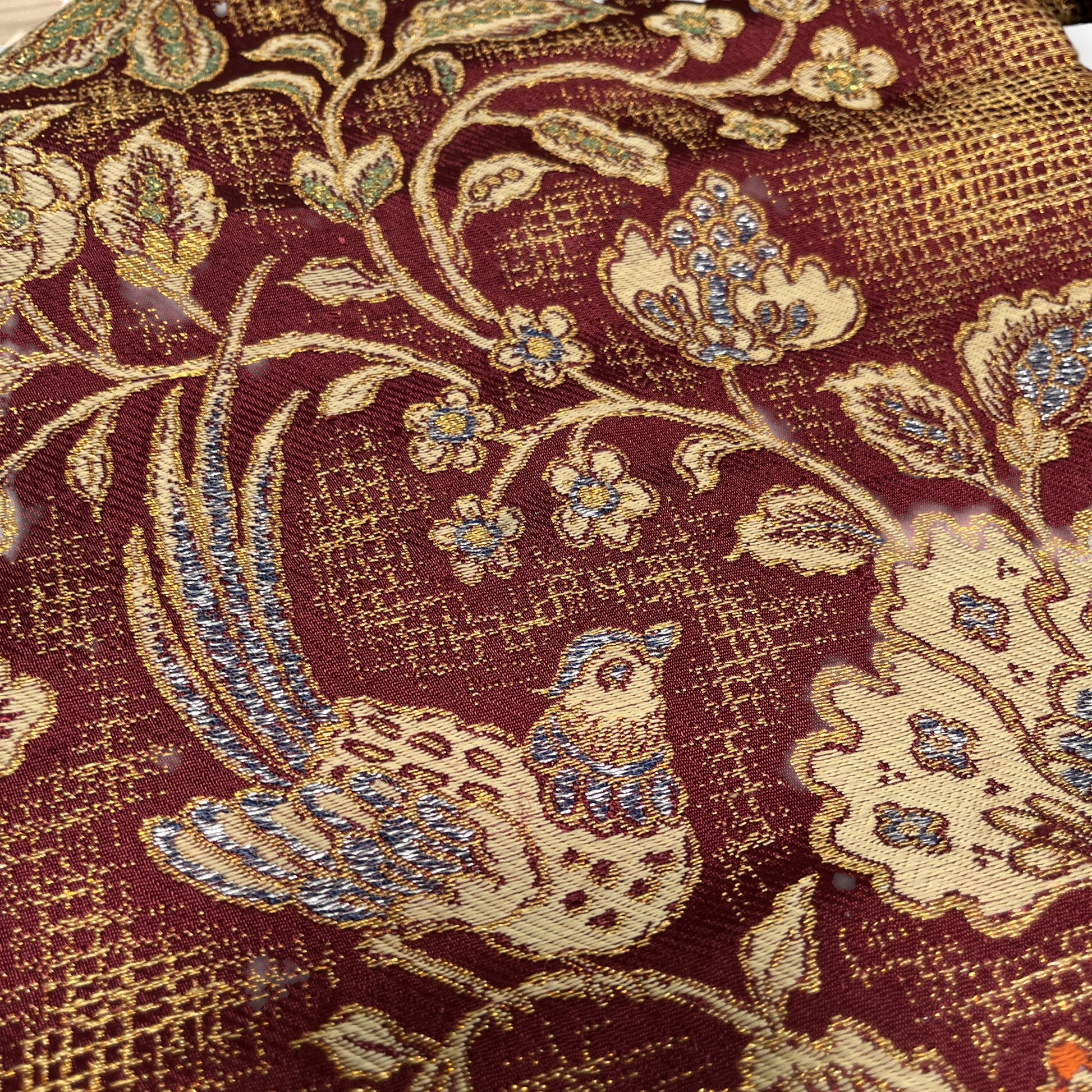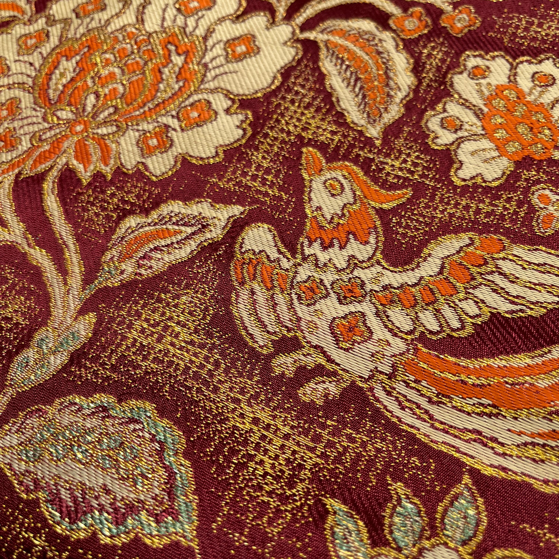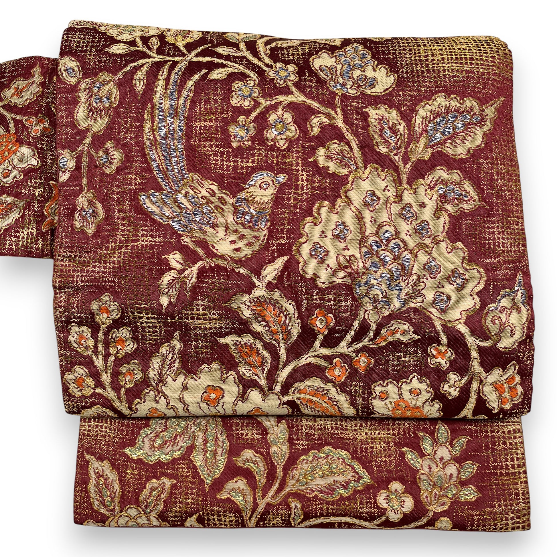 B29201 名古屋帯 花唐草 鳥文様 葡萄茶色