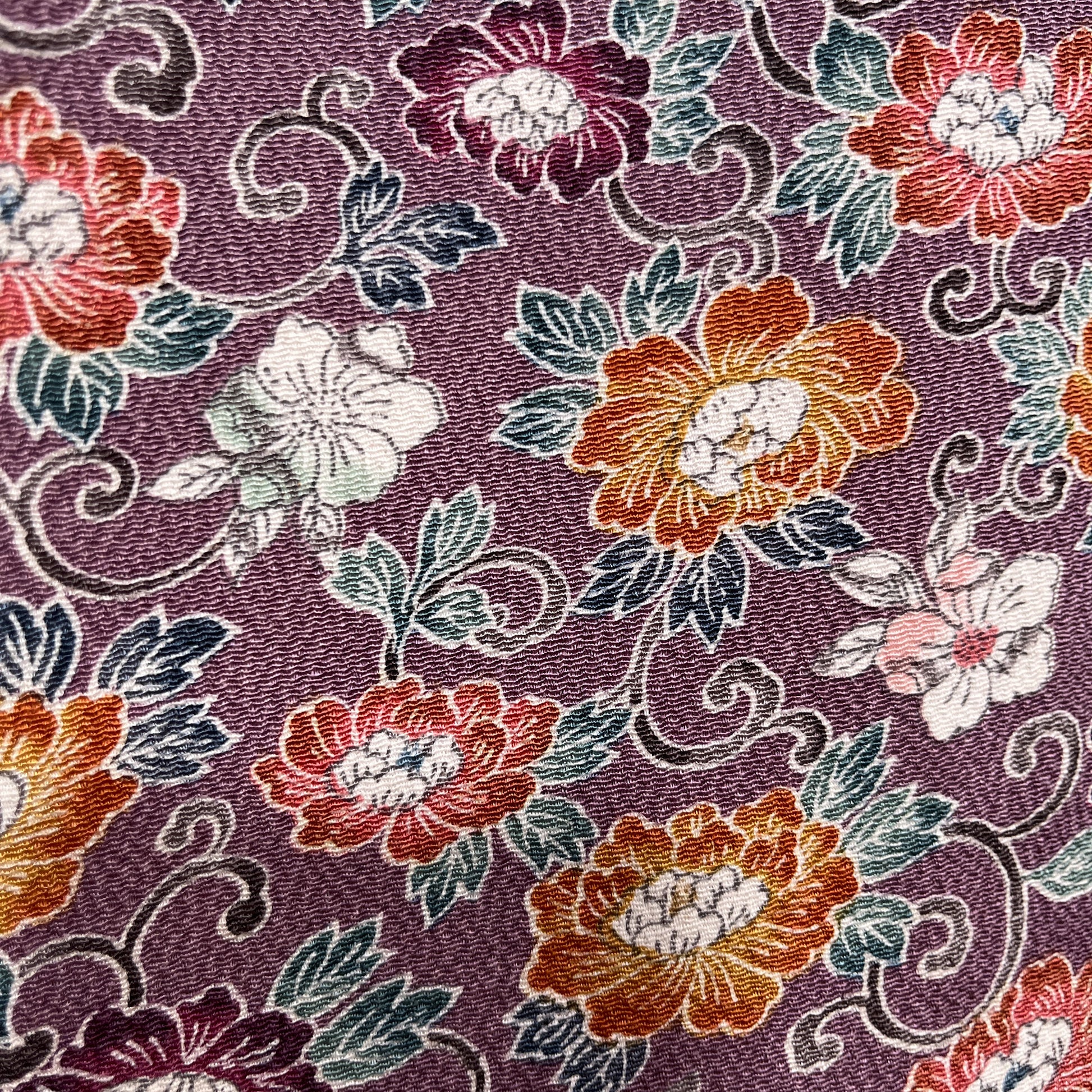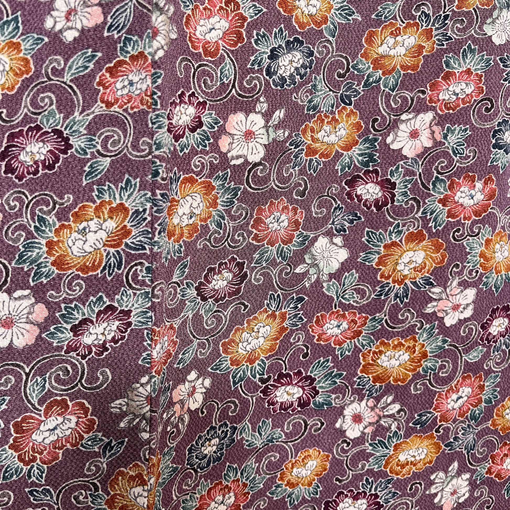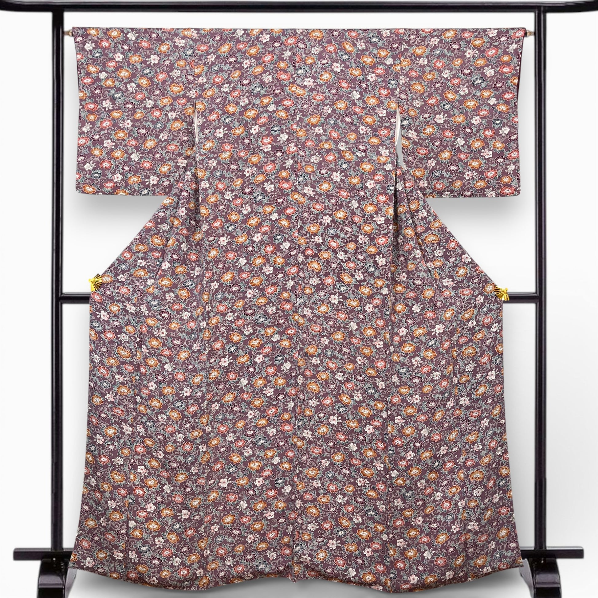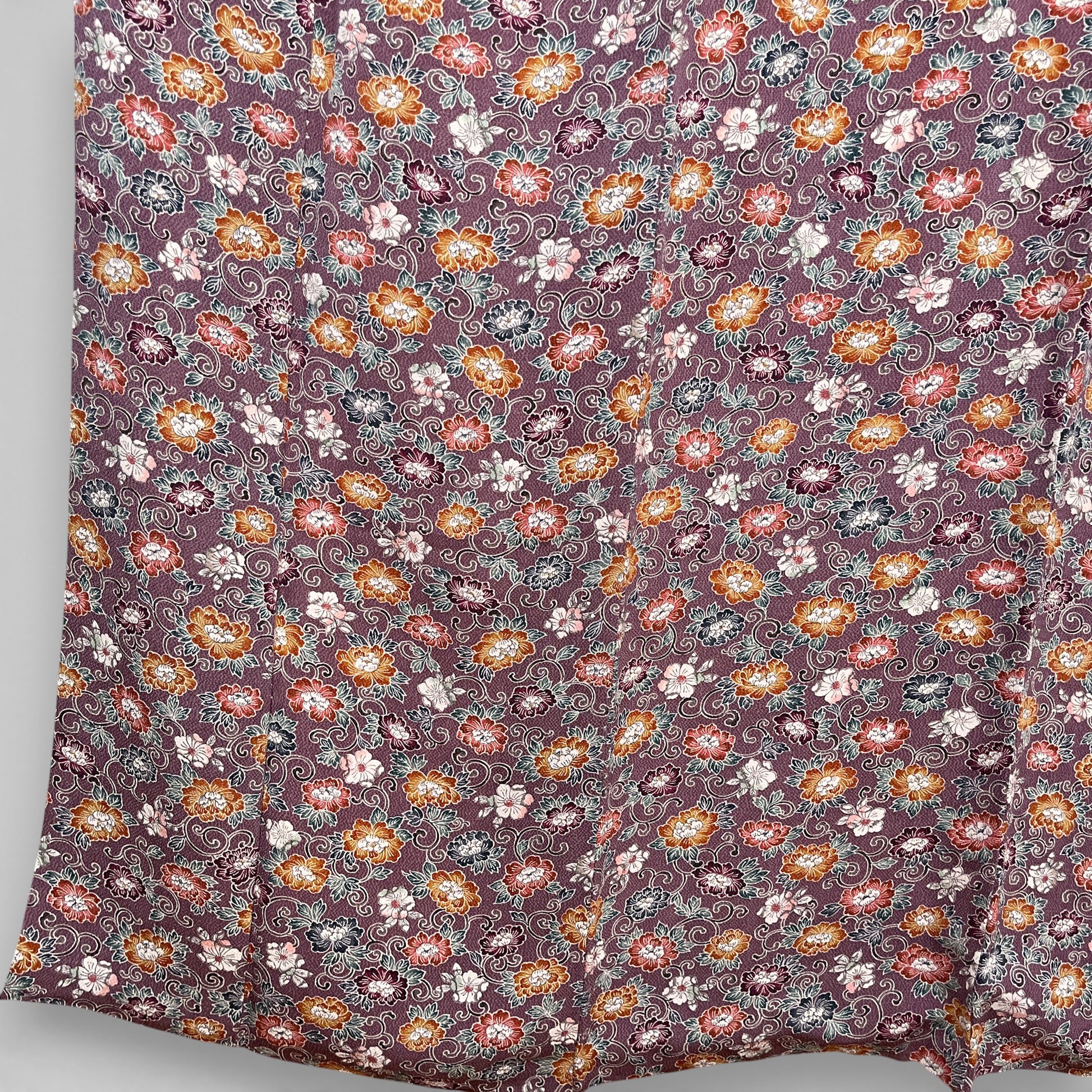 K112312-1 小紋 紫鼠 小花文様 唐草模様