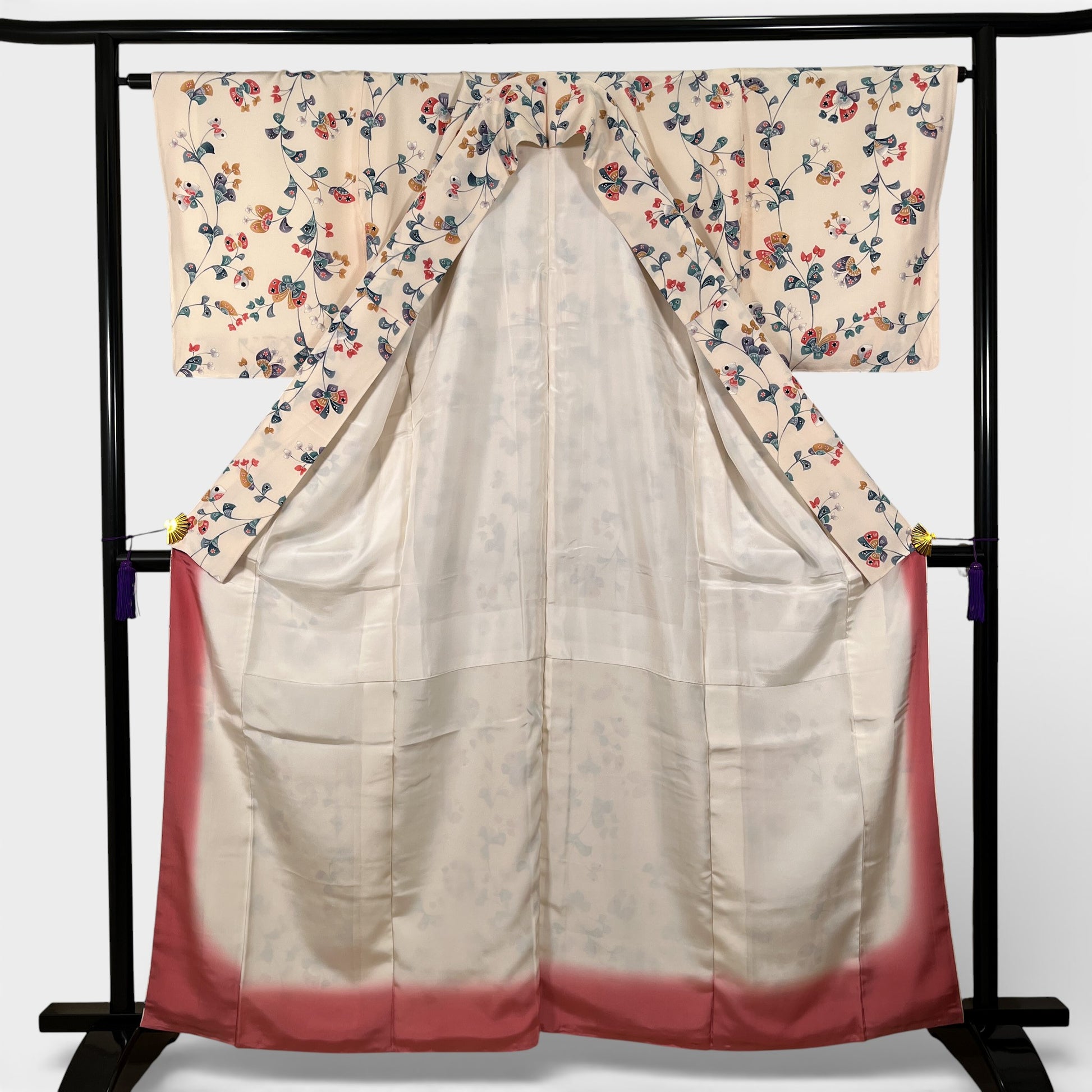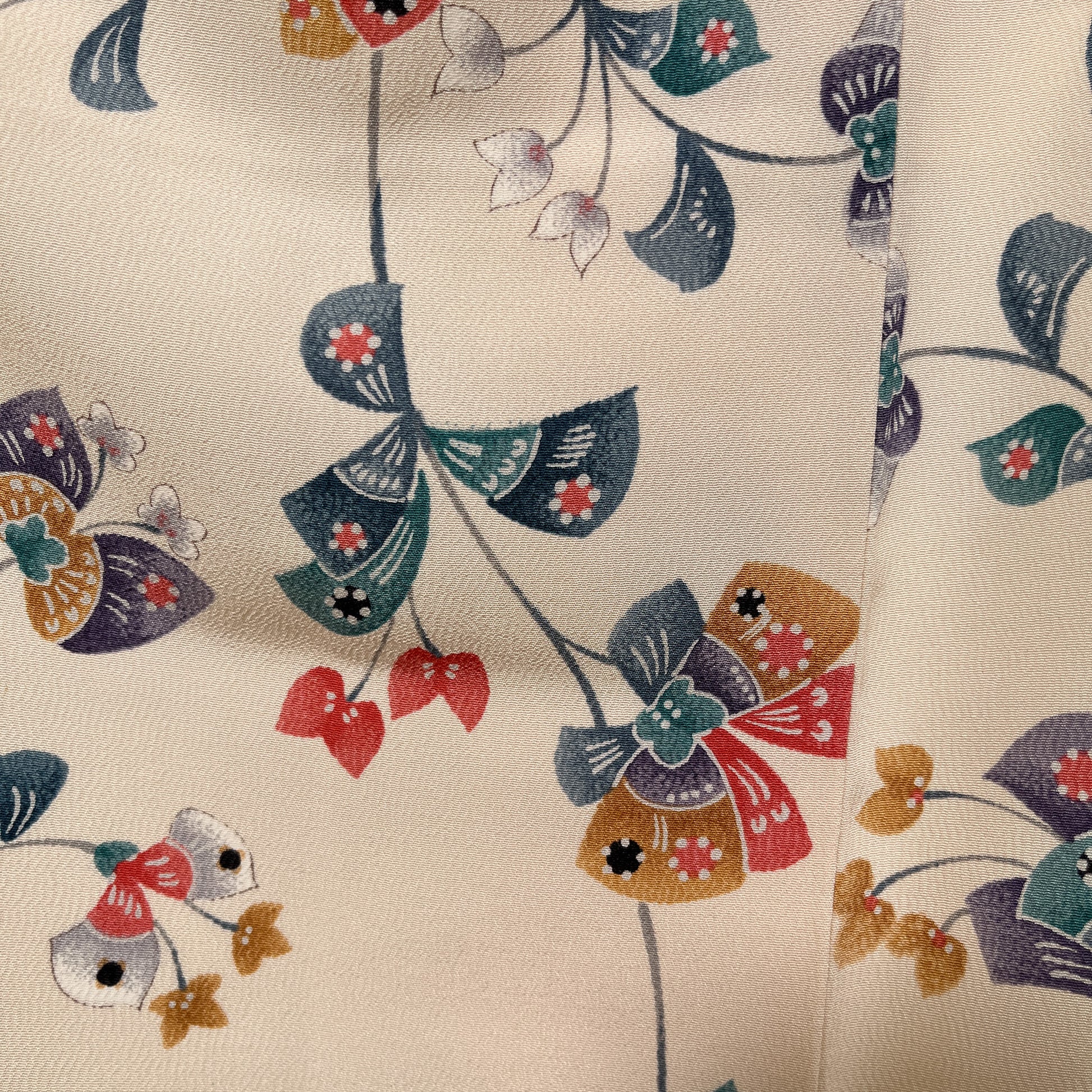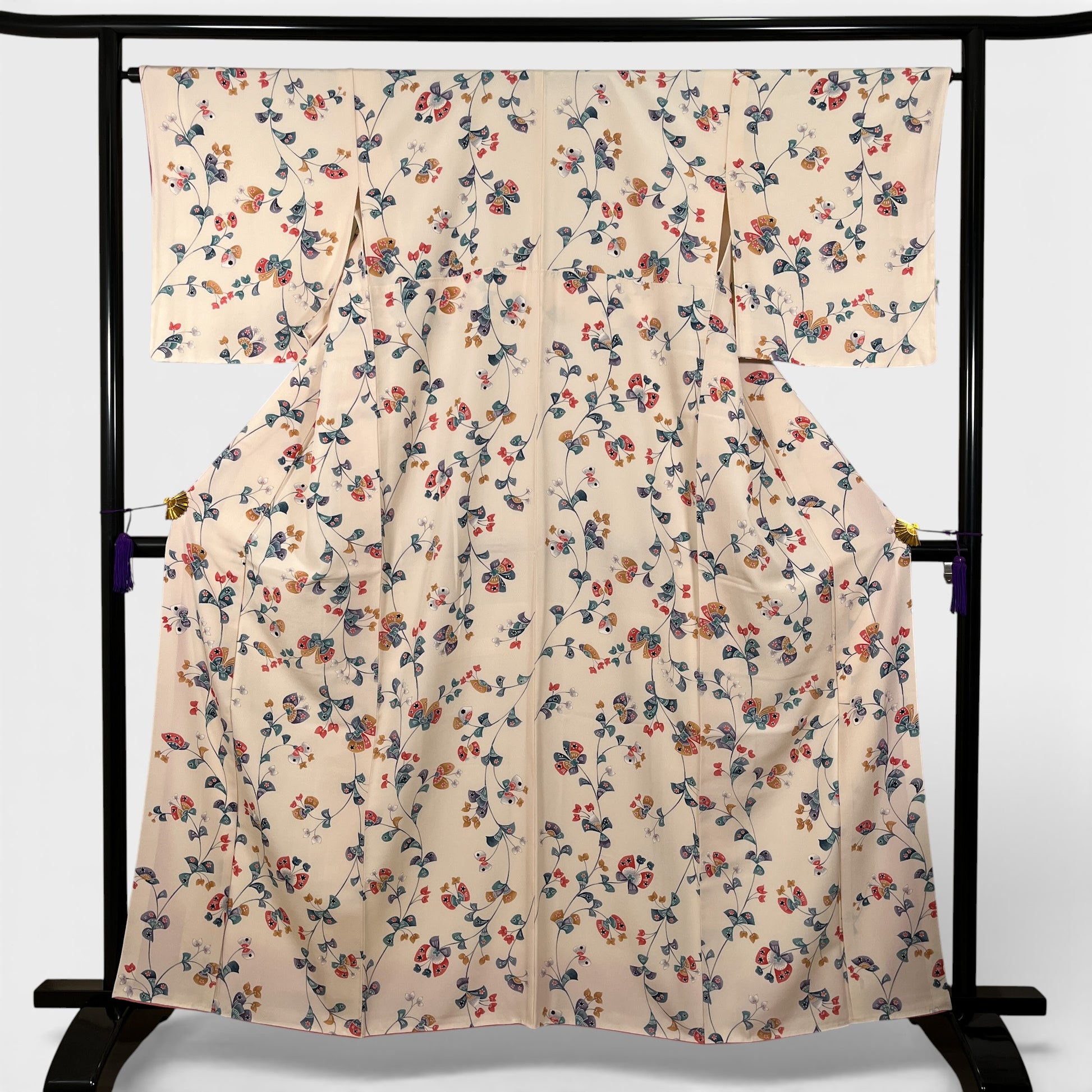 K96931 小紋 草花文様 アイボリー