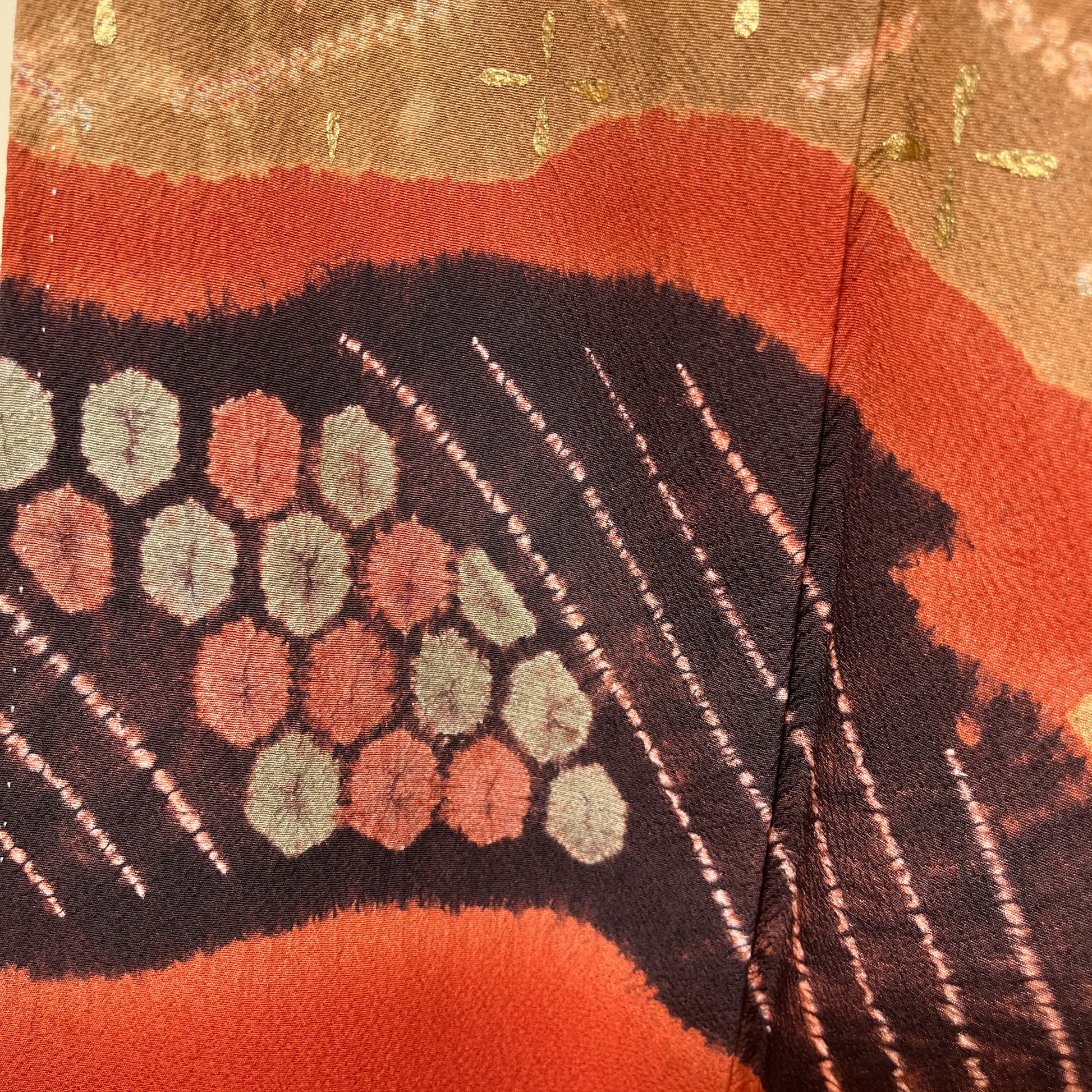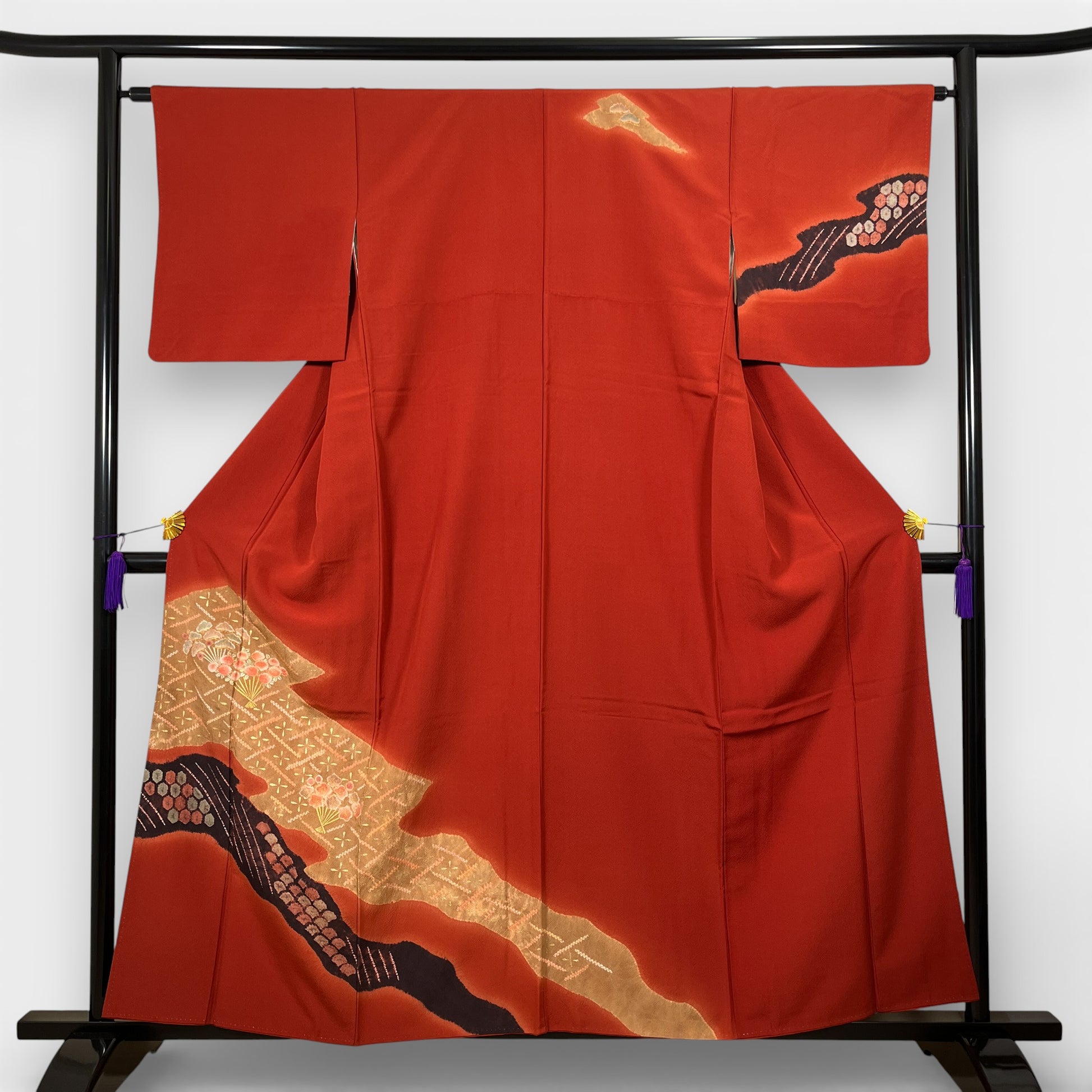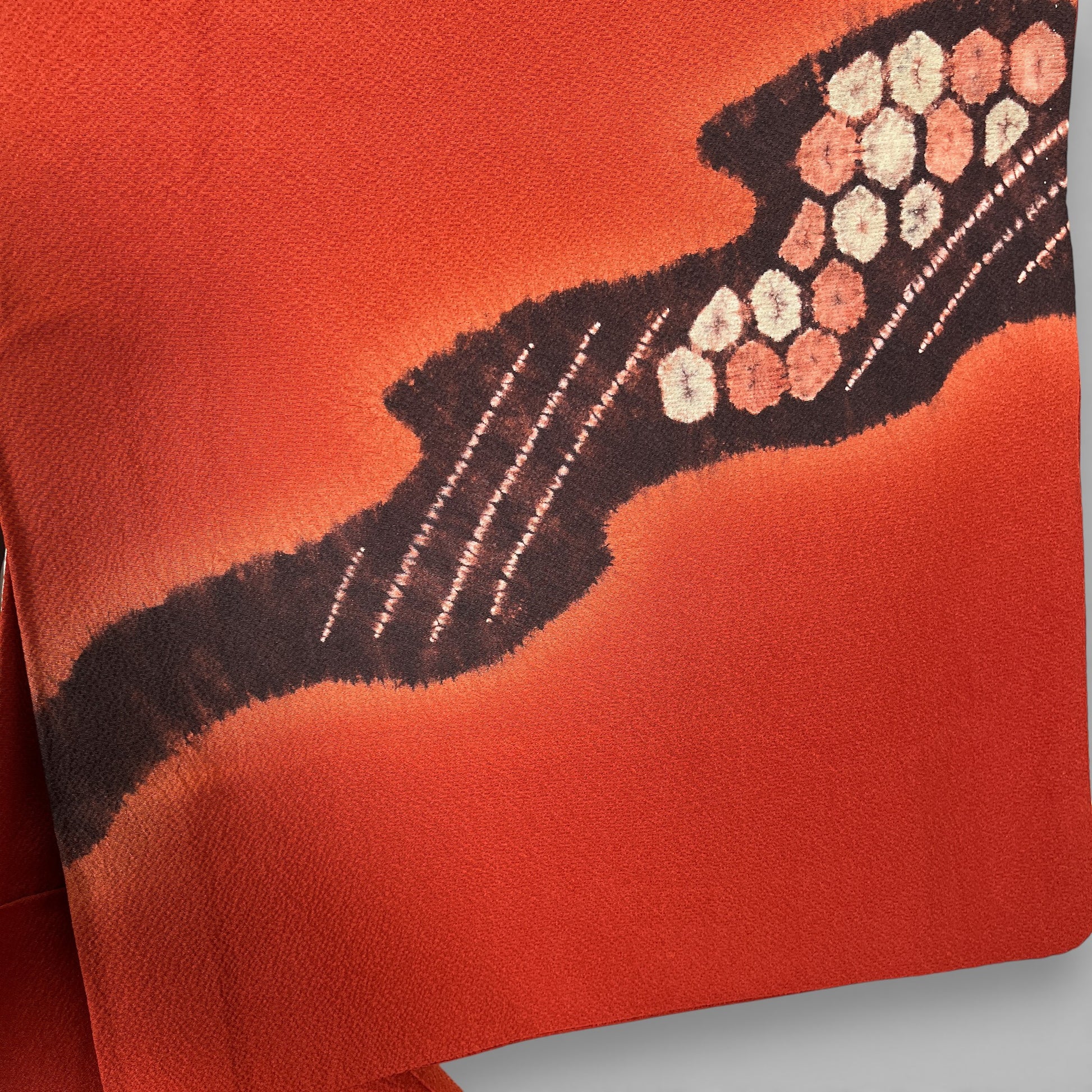 S2K101673-2 付下げ 裂取り文様 朱赤