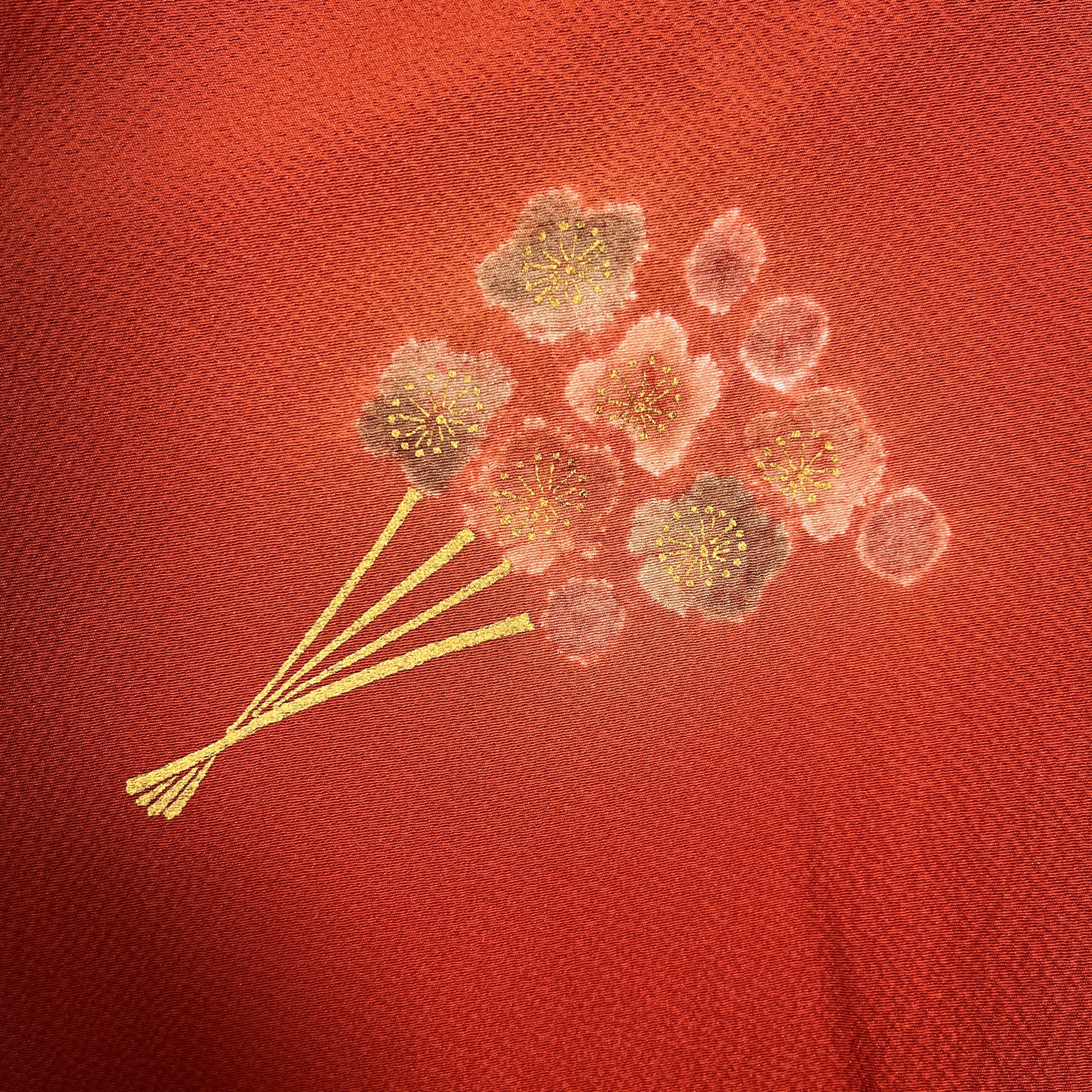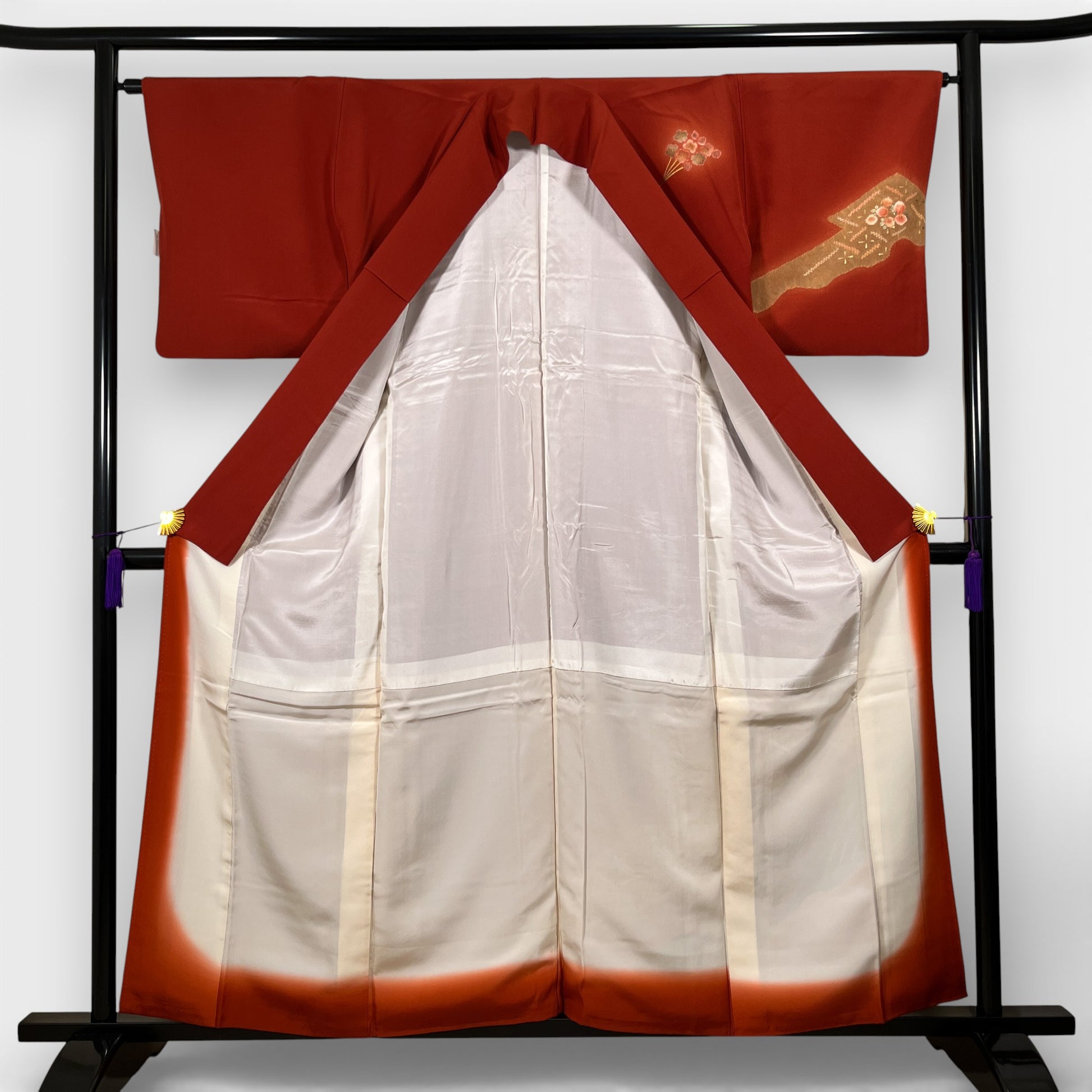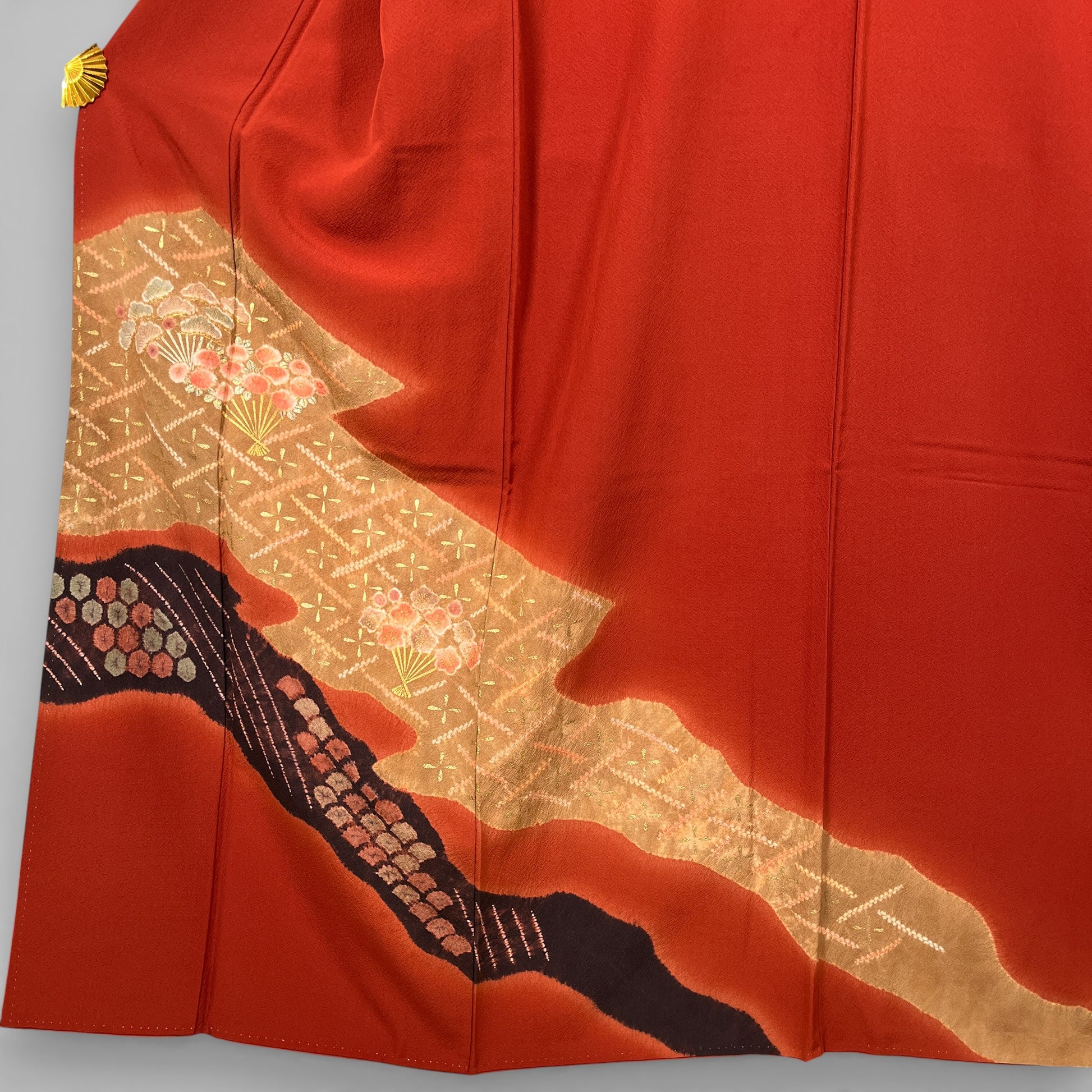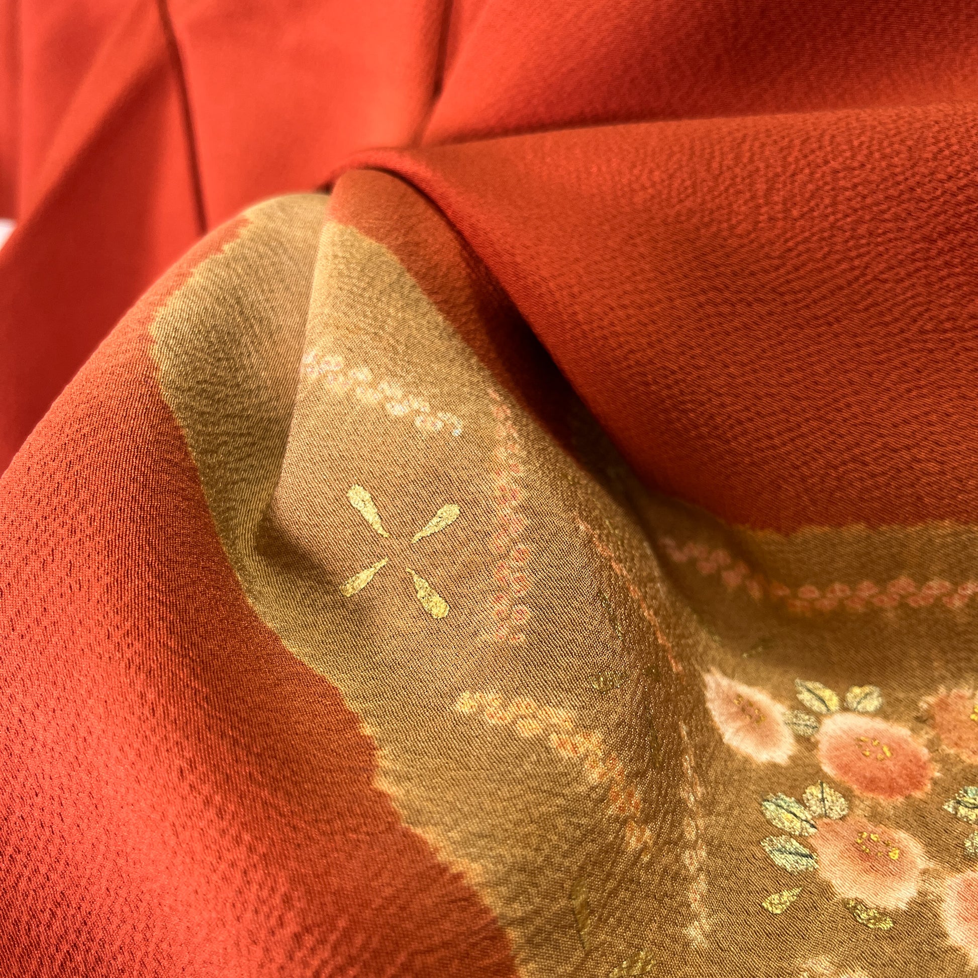 S2K101673-2 付下げ 裂取り文様 朱赤